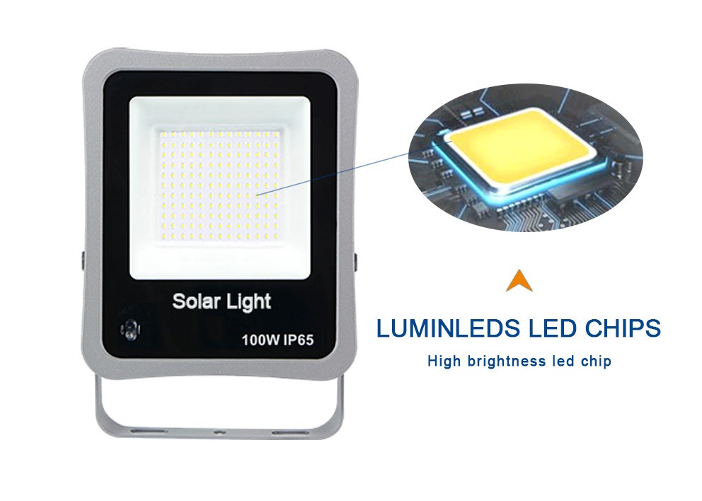 - √ 170lm/W SUPER BRIGHT - 100W hoog lumen zonne-afvallicht ondersteunt tot 350 vierkante meter verlichting, zoals 4 tot 5 eenheden verlichten een basketbalveld, 11 eenheden verlichten een half voetbalveld.