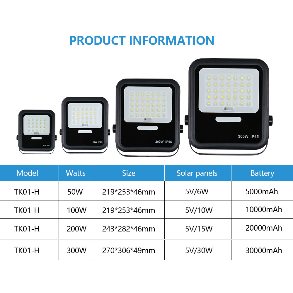 | TK01-H 300W | 3.2V 30AH | 5V/6V 30W | 6-8 Uur | ABS | SMD 2835 |
